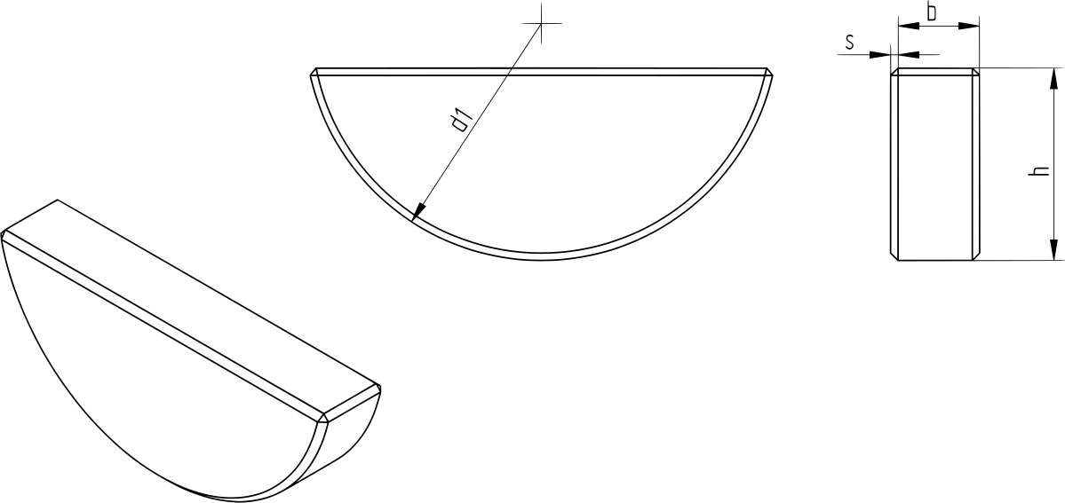 Full-radius half-moon keys are a full half-circle in size, which fully interface with the shaft's key seat. When measuring and ordering full-radius woodruff keys, you'll only need to take into account the width of the key and its height. The length can be derived from the key's height.